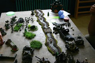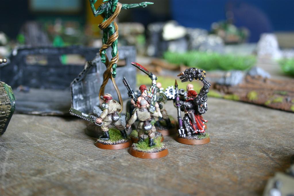 Armee: Imperial guard. 2 Russen (+Kommandant Pask), 2 Chimären mit Verteranen, 2 Todeswölfe, 1 Executor,1 Manticore, diverse Fusstruppen mit MaschKa und HeavyBolter, Straken mit Partytruppe in Chimäre.