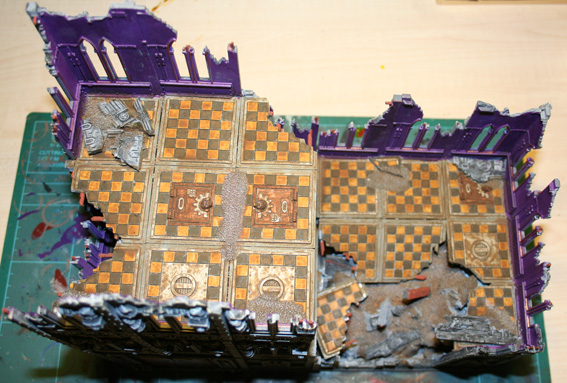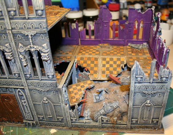 Am besten gefallen mir die Fließen, und ich muss euch sagen den boden im ersten stock hätte ich besser bemalt bevor ich das dach aufgesetzt hatte ^^ .. auf jedenfall hats da noch nen Sepia Wash gegeben.