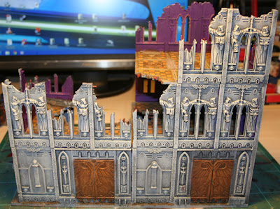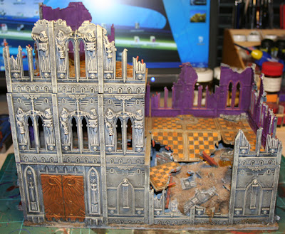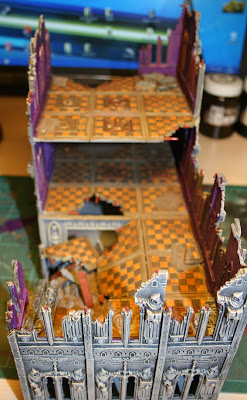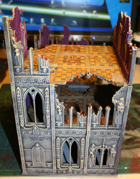 Wenn man sich die Bilder genauer ansieht wird feststellen das die Passgenauigkeit ziemlich im A.. ist, was daran liegt das das die Teile schon X mal zusammengeklebt wurden.. aber ich finde im ganzen fällt es nicht mehr auf.. das Gebäude wurde von mir mit meinem letzten Rest Roughcoat grundiert.. dann mit Lavado Negro gewasht und später mit Fortress Grey, Bleached Bone und Dheneb Stone gebürstet. Nichts besonderes..