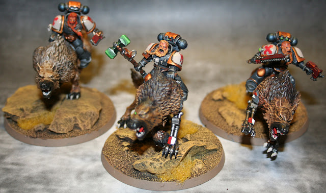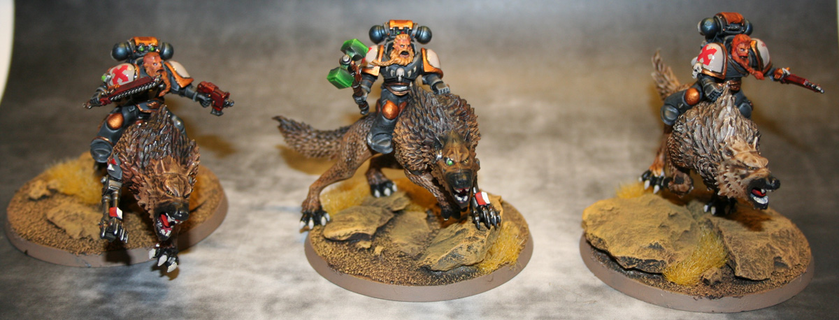 Bei Erscheinen des SW Codex war ich ja etwas skeptisch was den Fluff etc. der Thunderwolf Kavalerie anging, massige Marines auf noch massiveren Wölfen die übers Schlachtfeld reiten?.. dazu kam noch das es laange keine brauchbaren Modelle dafür gab..