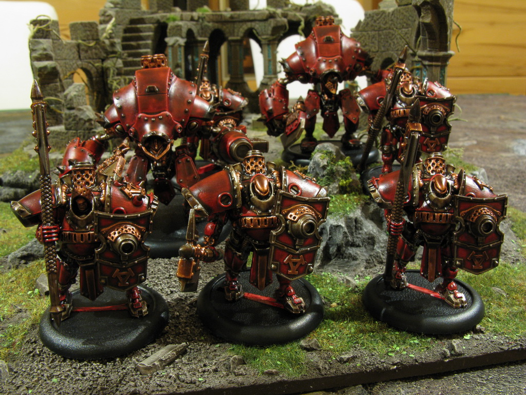 Zuviel Grün schadet den Augen, und eine Pause tut immer gut. Daher hab ich die Necronflieger mal fliegen lassen und hab die schon seit Ewigkeiten grundierten Khador-truppen aus der tollen ZweispielerBox von warmachine aus dem Schrank gekramt und weitergemacht. Dass ich nun auch einen Gegner gefunden hab der gern mitzockt herhöhte die Motivation natürlich nochmals.