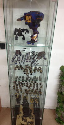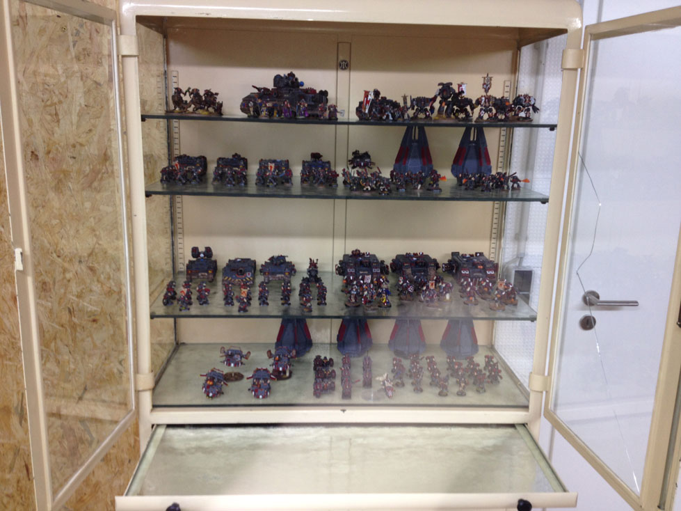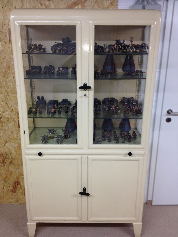 Eine meiner besonderen Freuden ist der Arztschrank aus den 20-40? Jahren den ich in ner Ecke in meiner Firma gefunden habe, richtig massiv und sperrig.. aber Hinti und Udo waren da so enthusiastisch und haben das Ding alleine zu mir in den Keller geschleppt.. ich hab da ein richtig schlechtes gewissen.. DANKE! .. Endlich genügend Platz für den Orden, und im Gegensatz zur Ikea Vitrine auch wirklich Staubdicht.. weiters kann man sie absperren, und ein Auszug auf dem man seine Armee fürs Spiel bereitstellenkann ist auch eingebaut... super!