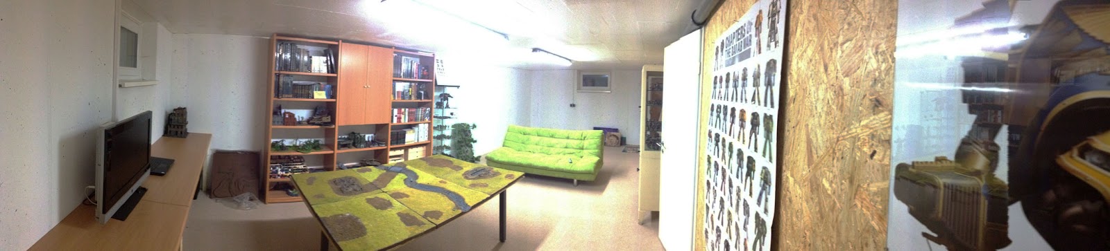 | Die Mancave hat die Werkbank bekommen, und ich hab einen provisorischen Spieltisch gebaut.. |