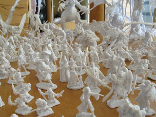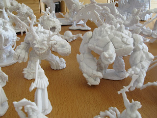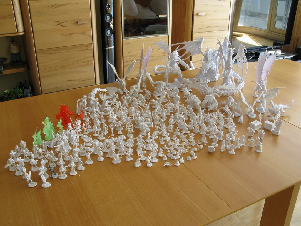 Eins ist gleich klar geworden: Meine Güte, sind das viele! und meine Güte, sind ein paar davon RIESIG! Ich werde wohl in keinem Fantasybrettspiel jemals wieder auf langweilige Pappaufsteller oder Plastikmarker zurückgreifen müssen. In dieser Sammung ist einfach alles vertreten. Und obwohl der Schwerpunkt klar auf Fantasy liegt gibts auch die eine oder andere SciFi-Mini, ein paar Cowboys und sogar ein paar Einrichtungsgegenstände.